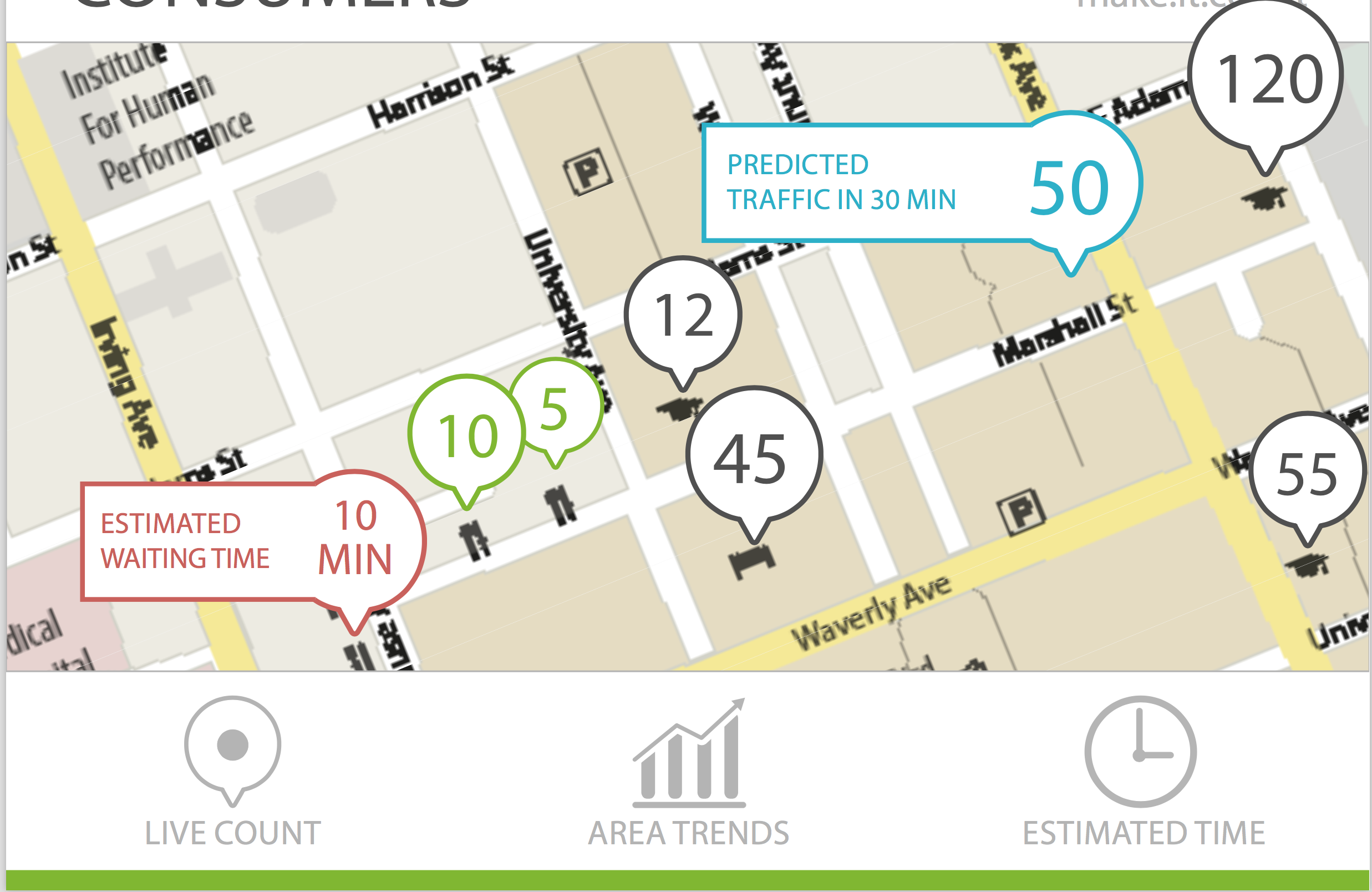 Have you ever spent a winter at school in upstate NY? The last thing you want to do is leave your room to walk across campus only to find your favorite spot occupied. ElbowRoom began as a class project called StudyView, to address just this problem. It quickly morphed into a tool for business and consumers to know how busy the local coffee shops, study spots and interesting places were. By owning a network of sensors and licensing that data to interested parties, our team thought we would create an infrastucture around real-time access to occupancy counts and environmental data in local spaces. Like a real-time version of Foursquare where no one had to check in. It was 2012, and we thought we were ahead of our time.
